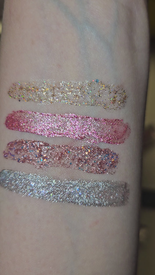 Ingredients: Distilled water, Carbomer 940, Phenoxyethanol, sorbic acid, caprylyl glycol, eye safe glitter, mica.
