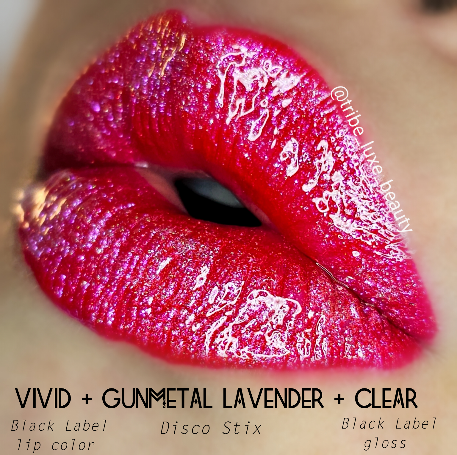 Disco Stix are a super sparkly top coat for any of the Black Label lip colors. They need to be sealed with a Black Label gloss. Shake well. Dab on as your final layer on top of your Black Label lip color, let dry & seal with Black Label gloss. Longwear glitter lops! Room intentionally left in tube to aid in shaking.