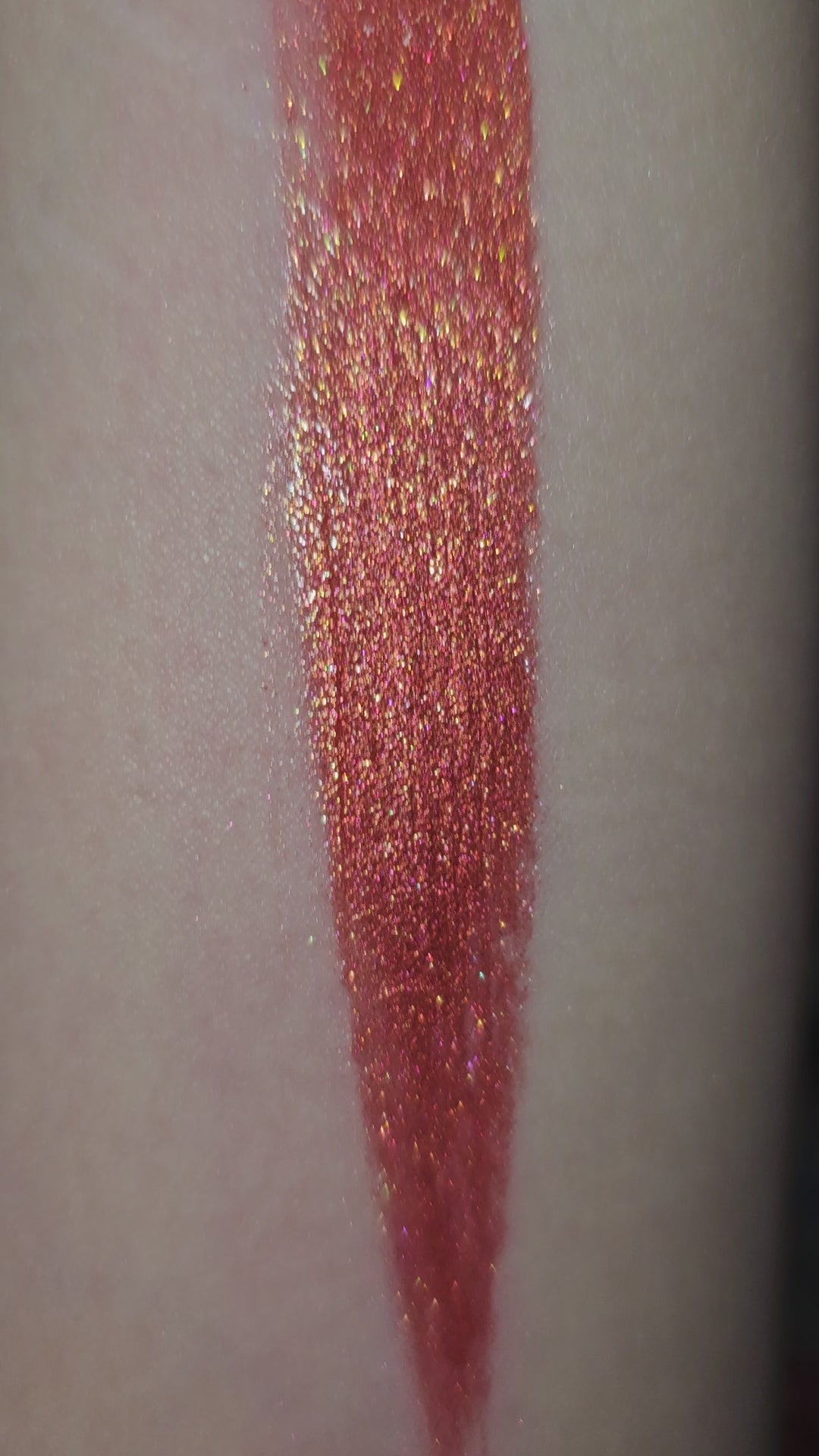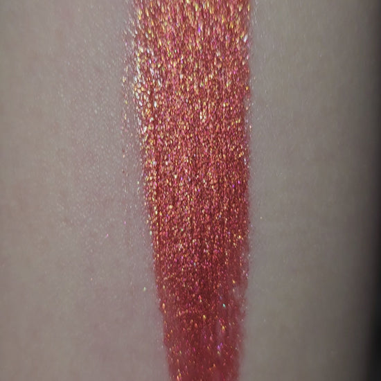 Warm toned bold orange packed with shimmer with a red undertone.