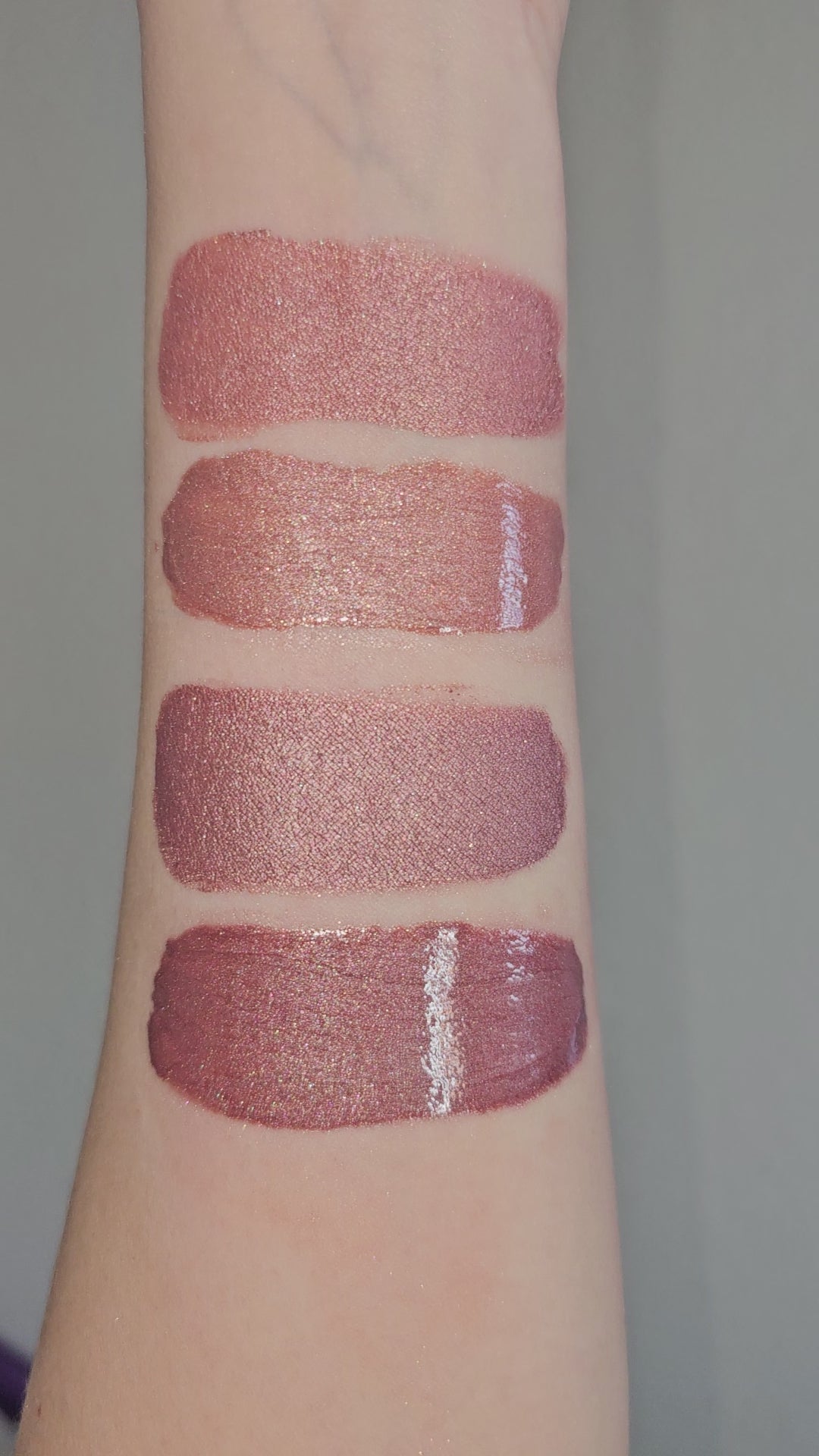 Neutral toned rosey beige with a metallic finish.