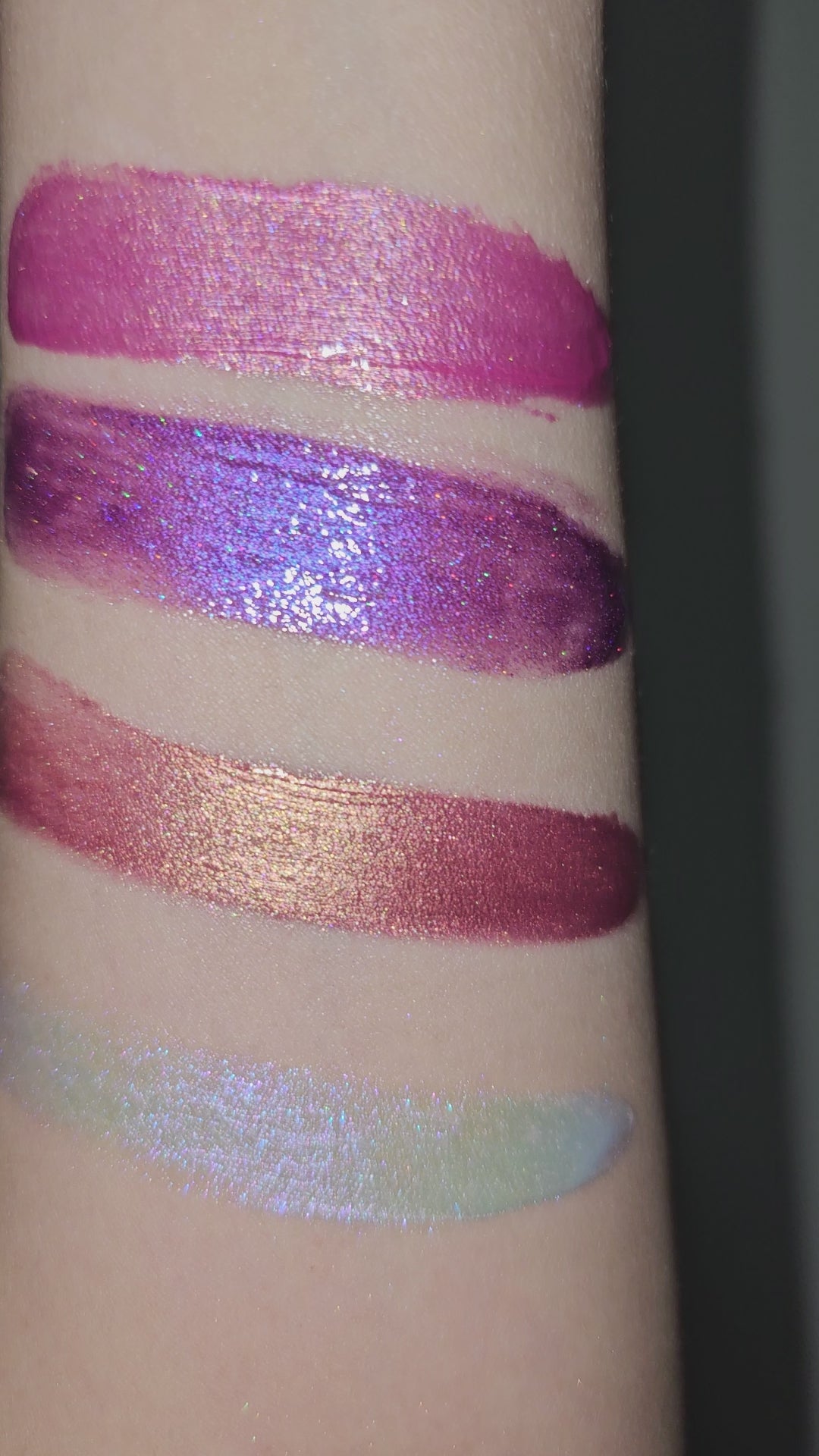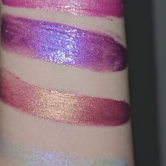 Warm toned metallic rose gold.