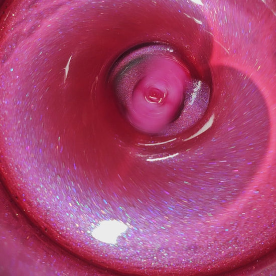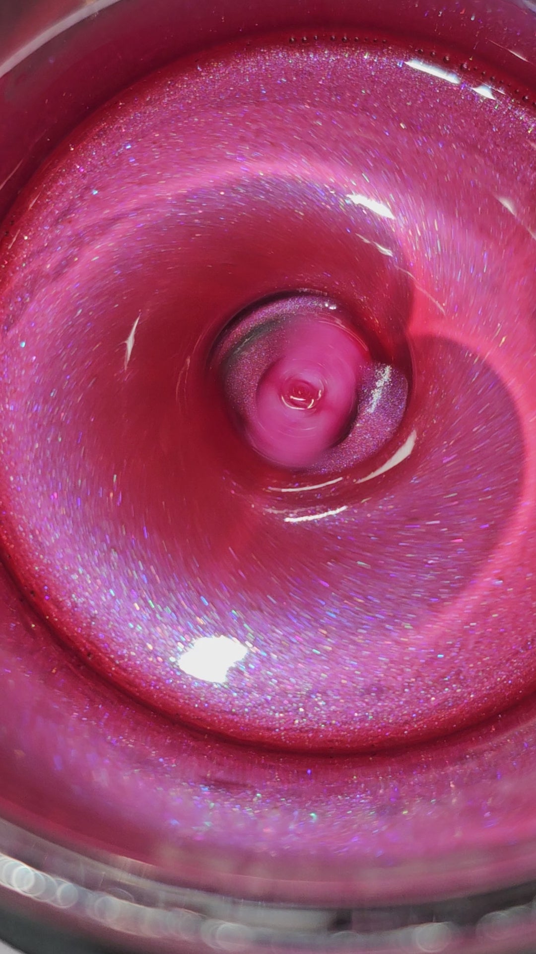 Cool toned medium strawberry red with multicolored shimmer and a pink undertone.