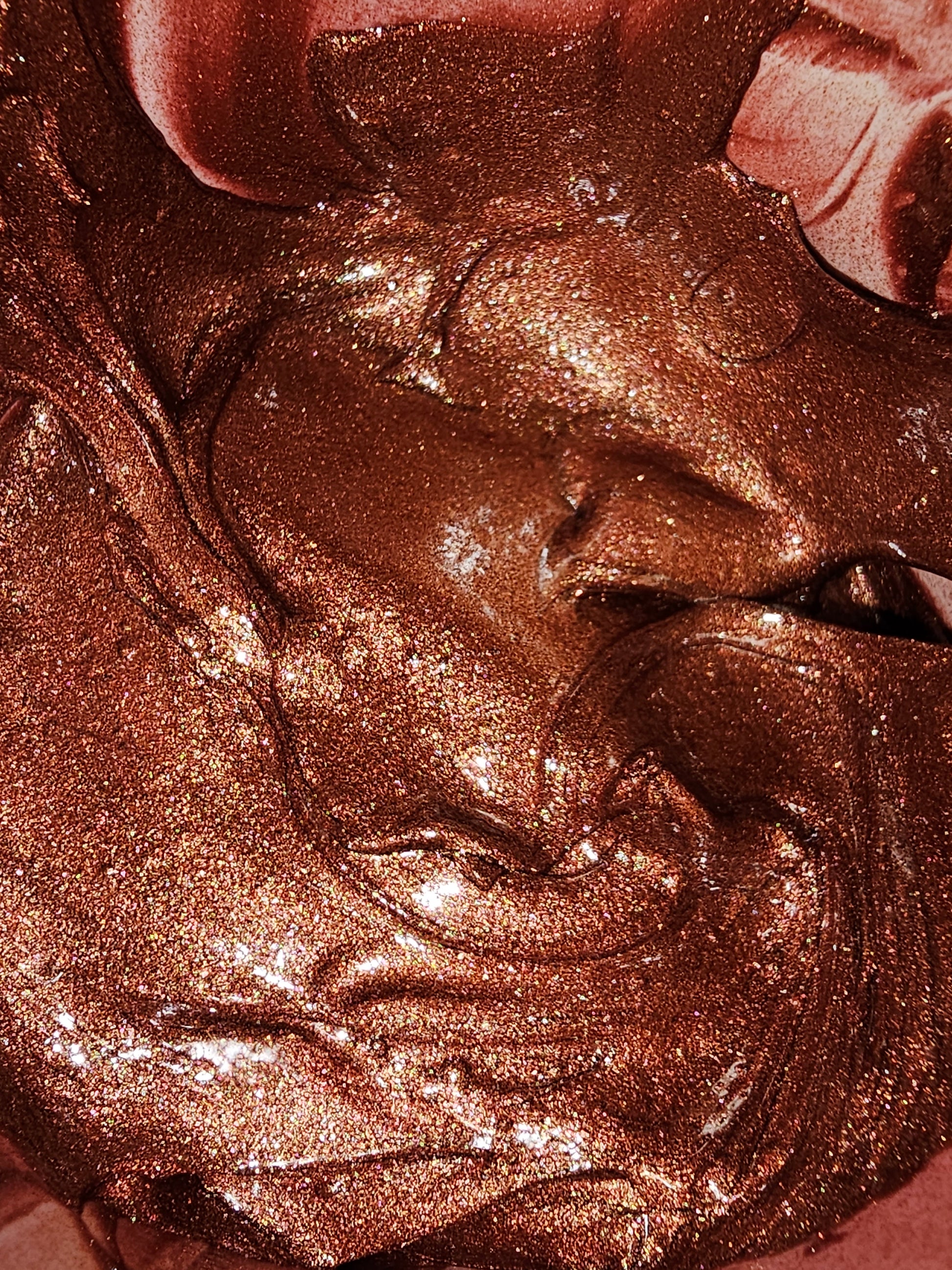 Warm toned metallic super shimmery golden bronze with a red undertone.
