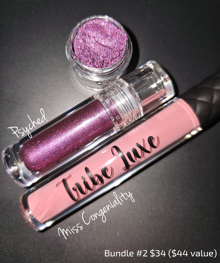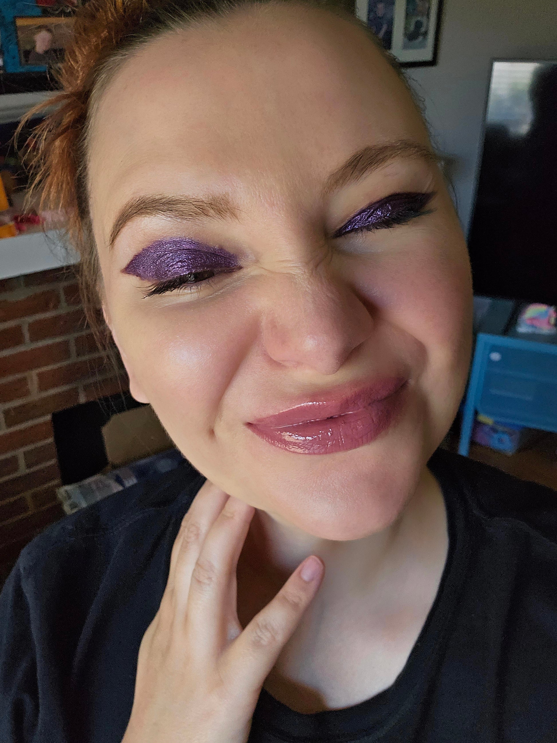 Psyched 24/7 cream & 365 loose eyeshadows - cool toned shimmery metallic deep purple.